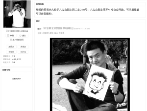 網(wǎng)友開博客紀念李曉明,圖為博客首頁截圖。?。▽O艷 制作) |