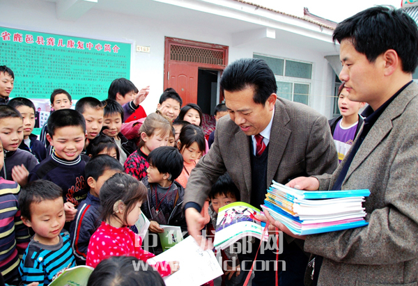 連祥工(右一)與愛(ài)心人士一起看望留守兒童。(資料圖片)