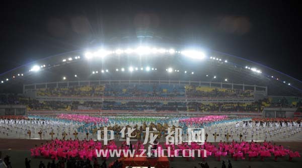 在開幕式大型文體表演《龍騰盛世·周口頌歌》中,5000余名演員為現(xiàn)場觀眾奉獻了一場極具濃郁周口特色的文藝演出,集中展示了我市深厚的歷史積淀、厚重的文化底蘊及現(xiàn)代農(nóng)業(yè)發(fā)展的壯麗篇章和科學發(fā)展、共建和諧、實現(xiàn)富民強市的蓬勃生機,讓現(xiàn)場觀眾享受了一次豐盛的文化盛宴。