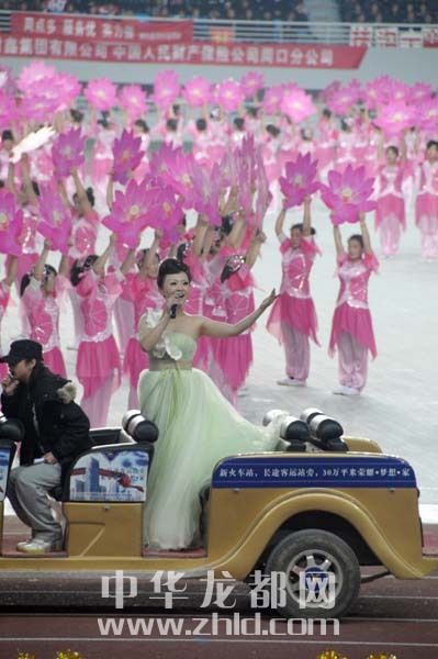 17時(shí)20分許,天色明顯暗了下來,可觀眾的熱情依然不減,文體演出進(jìn)入了以“超越夢想”為主題的第四章。這個(gè)章節(jié),因?yàn)橛辛恕熬猎缕孥E”的助陣,演出現(xiàn)場更加激情四射。