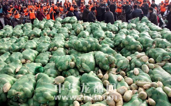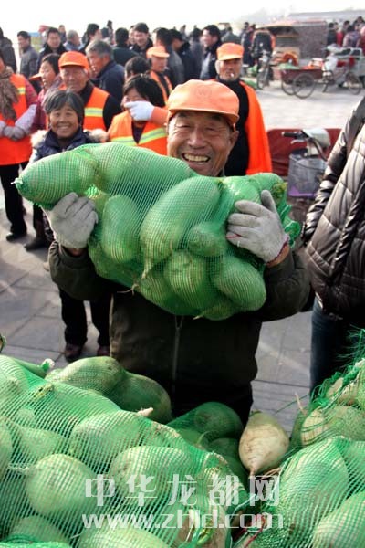 當(dāng)天上午,淮陽縣太昊陵廣場人頭攢動,1000余名貧困家庭代表早早地來到現(xiàn)場等候。9時許,“愛心蘿卜”開始免費(fèi)發(fā)放。僅一上午時間,20萬斤蘿卜就被認(rèn)領(lǐng)一空。