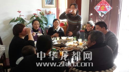 ????昨天中午,市民韓女士(站立者)趁假期看望老人,一家團(tuán)聚。晚報(bào)記者 宋風(fēng) 攝