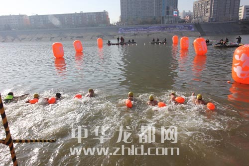 ????昨天上午,來(lái)自周口各縣市區(qū)及漯河、鄭州的300余名冬泳愛(ài)好者齊聚沙潁河,在中州大道橋附近河段展開了一場(chǎng)邀請(qǐng)賽。