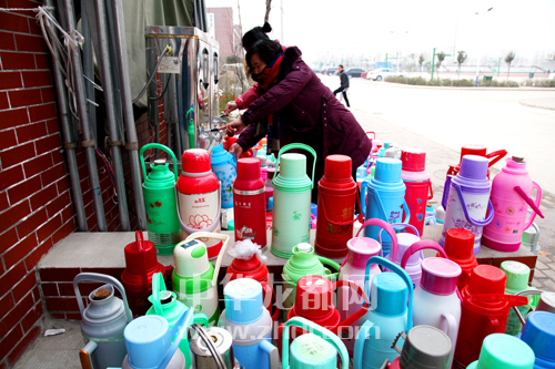 ????本報訊 這個冬天雖然寒冷,但在鄲城縣一高校園超市門口熱水器旁卻始終暖意融融。帶來暖意的除了熱氣騰騰的開水,還有幾位超市阿姨的愛心舉動。原來,超市員工蘇玉環(huán)、薛玉玲等人在這個冬天一直幫學(xué)生們接熱水(如上圖)。她們的善意舉動不僅免去了學(xué)生們排隊打水的辛苦,還避免了學(xué)生們接水燙傷的危險。