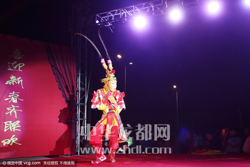 ????還記得小時候我們搬著小板凳到村頭看電影或聽?wèi)騿??如今啊,農(nóng)民不再看電影聽?wèi)蛄?,而是開始在村頭辦“村晚”啦。2月2日晚上,太康縣老冢鎮(zhèn)孟莊行政村舉辦了一臺猴年“村晚”。演出現(xiàn)場震天的鼓點和著嗩吶的節(jié)拍,熱鬧非凡。英俊的公子、羞怯的大家閨秀,神采奕奕的大爺大媽,一個個生動的角色,一段段幽默詼諧的節(jié)目,吸引著附近數(shù)十個村的兩萬余名村民在此觀看。