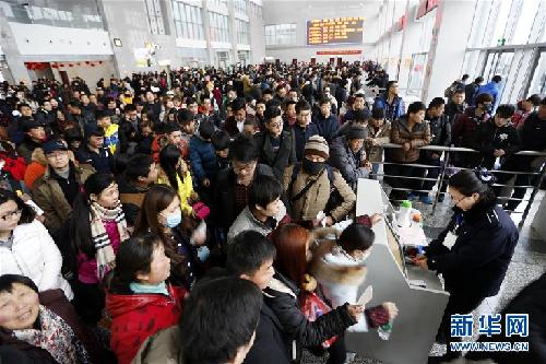 ??? 2月13日,旅客在江蘇連云港贛榆汽車客運(yùn)總站候車大廳內(nèi)準(zhǔn)備檢票乘車。據(jù)交通運(yùn)輸部2月14日消息,2月7日至13日春節(jié)黃金周期間,全國旅客發(fā)送量達(dá)4億人次,比去年同期增長6.7%。其中鐵路4777.6萬人次,增長6.1%;道路3.33億人次,增長7.0%;水運(yùn)1009萬人次,增長3.2%;民航854.4萬人次,增長2.9%。