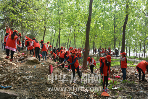 志愿者在清掃拉圾。理效明 攝
