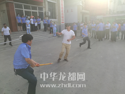 ????在防恐防暴的演練中,兩名手持兇器的歹徒在車站大廳里轉悠,車站值班站長見此情況后,想方設法穩(wěn)定住兩名歹徒,隨后一邊安排工作人員疏散候車廳內(nèi)旅客,一邊組織工作人員拿起警棒、防爆叉與歹徒進行搏斗(如圖四)。