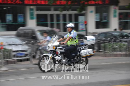 “摩托”交警上街巡邏????