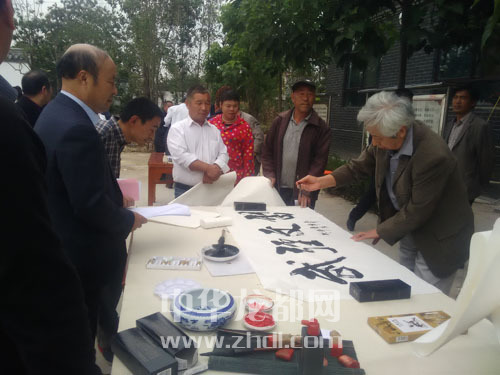 ????本報訊 10月9日,沈丘縣馮營鄉(xiāng)李寨村的父老鄉(xiāng)親為文化著了一回魔。當日,由河南省文化廳主辦,省文化館、省陽光工程文化志愿者項目辦等單位承辦的“河南公益無限系列活動——千名書畫志愿者進萬村”在李寨啟動,現場揮毫潑墨的省市書畫名家被爭相求字求畫的村民圍得水泄不通。