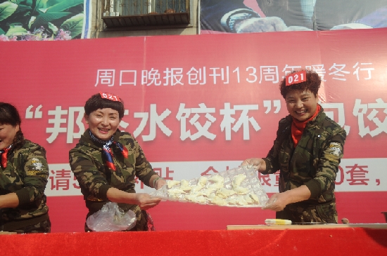 ????12月4日,周口晚報(bào)創(chuàng)刊13周年暖冬行大型公益活動——包餃子大賽啟動第一場分站賽,69組138名選手激烈角逐后,6組選手獲得分站賽一、二、三等獎。晚報(bào)記者 朱海龍 攝
