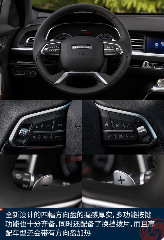 一切以駕駛員為中心的設(shè)計理念值得肯定,微微朝向駕駛員的中控設(shè)計,全新的電子換擋桿以及多媒體控制旋鈕都給我留下了很深的印象,當(dāng)然了全景天窗進(jìn)一步增加了車內(nèi)空間的開揚(yáng)感,全新設(shè)計的四幅方向盤的握感厚實,多功能按鍵功能也十分齊備。總之,全新哈弗H6的內(nèi)飾讓我們看到了不一樣的自主設(shè)計,很用心也很有設(shè)計感,沒有了雜亂無章,相反,這樣的設(shè)計會讓人很愿意和汽車獨(dú)處,如果真要挑出一些不足的話,那就是全液晶只有頂配車型才有,如果能夠作為全系標(biāo)配就好了。