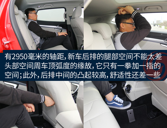 體驗者身高175厘米,前排座椅降到最低的時候頭部還有比較充足的余量,完全不會感覺到壓抑;不過后排頭部就不太行了,頭部距離車頂非常接近,要是身高再高一些的乘客坐進(jìn)后排,已經(jīng)基本上快頂?shù)筋^了。儲物空間中規(guī)中矩,基本上沒有太多讓人驚喜的地方。扶手箱的空間不小,高度也合適,可以放些雜物。