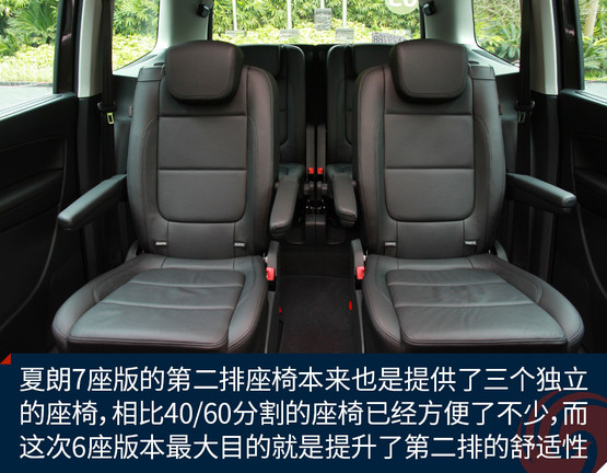 當(dāng)然作為這次新增的車(chē)款,我們還是要重點(diǎn)介紹一下夏朗6座版相對(duì)于7座版的區(qū)別。首先要說(shuō)明的是夏朗7座版的第二排座椅本來(lái)也是提供了三個(gè)獨(dú)立的座椅,相比40/60分割的座椅已經(jīng)方便了不少,而這次提供的6座版本最大目的就是提升了第二排乘客的舒適性。