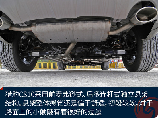 獵豹CS10采用前麥弗遜式、后多連桿式獨立懸架結(jié)構(gòu),相比同級別扭力梁車型多多少少提升了一定的操控感。懸架整體感覺還是偏于舒適,初段較軟,對于路面上的小顛簸有著很好的過濾,在彎中的支撐力也較有韌性,過彎時的側(cè)傾控制的比較不錯。