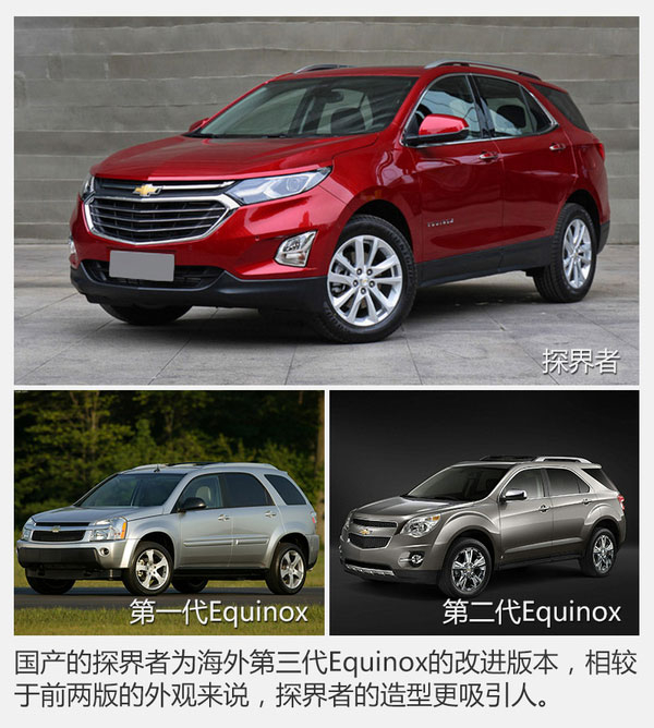 探界者其實(shí)并非科帕奇的換代車型,而是完完全全的一款全新車型,國(guó)產(chǎn)探界者也并不是第一次出現(xiàn)在世人面前;探界者早在北美市場(chǎng)供應(yīng),名為Equinox的它是通用汽車在北美市場(chǎng)最受歡迎的車型之一。這次引入國(guó)內(nèi)的探界者已經(jīng)是它的第三代車型,而第二代在整個(gè)北美市場(chǎng)位列全部車型銷量榜的第15位,可見其可靠的實(shí)用性和較高的性價(jià)比受到了多大的認(rèn)可。