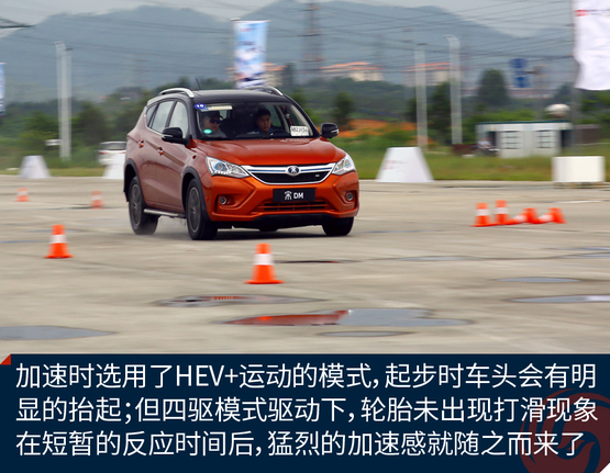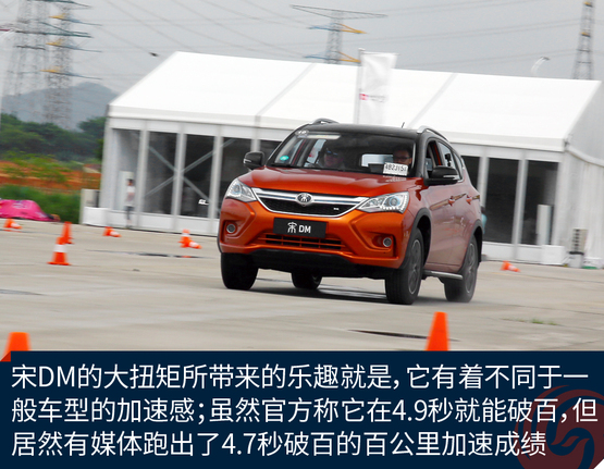 ????????為了充分體驗宋DM的加速能力,我們在試駕場地對其進行了試駕體驗。雖然試駕前一天下過雨,場地還有積水,但是宋DM起步倒是非常平穩(wěn)。并沒有因為電機瞬間大扭矩輸出而導致原地嚴重滑胎的情況發(fā)生。經(jīng)過分析,出現(xiàn)這種情況的原因可能是宋DM全系標配了ESP車輛穩(wěn)態(tài)控制系統(tǒng),因此在起步時或者濕滑路面上行駛也能保證平穩(wěn);另一個原因是宋DM搭配了全時電四驅(qū),車輛前后軸上各搭載有電機,四輪驅(qū)動讓車輛的動力輸出更順暢和均衡。