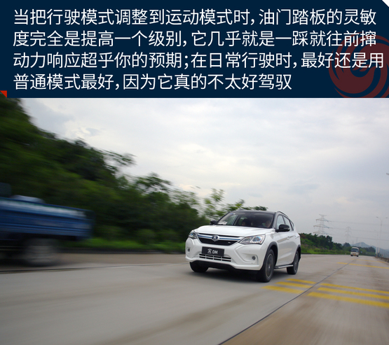 ????????在混合動力模式下,將駕駛模式調(diào)整為SPORT模式,由于起步階段是電機發(fā)力,因此并不像汽油車那樣靠吊轉(zhuǎn)速來獲得最大的扭矩。此時,你只需將油門踩到底,任由宋DM的電機和發(fā)動機發(fā)力就行,而大扭矩帶來的直接體驗就是,身體像是被摁壓在座椅上,任由車輛來讓我體驗G值給身體所帶來的快感,而這種“變態(tài)”的加速感體驗確實是非常的過癮;可當你還在意猶未盡地回味這速度高潮的時候,不知不覺就到了該踩剎車的節(jié)點。