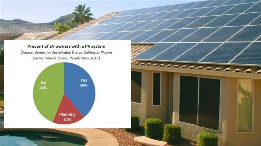 ????????一直以來爭議的問題,盡管電動車在行駛時確實(shí)沒有排放,但電能本身是二次能源,生產(chǎn)電能的過程中同樣會產(chǎn)生排放,而且這排放比起生產(chǎn)汽油更嚴(yán)重。視頻中給出了另一個數(shù)據(jù),加利福尼亞使用電動車或者插電式混合動力車的用戶中,家里有太陽能發(fā)電以及類似清潔能源系統(tǒng)的占到了39%的比例,而還有17%的用戶有計(jì)劃安裝類似發(fā)電系統(tǒng)。