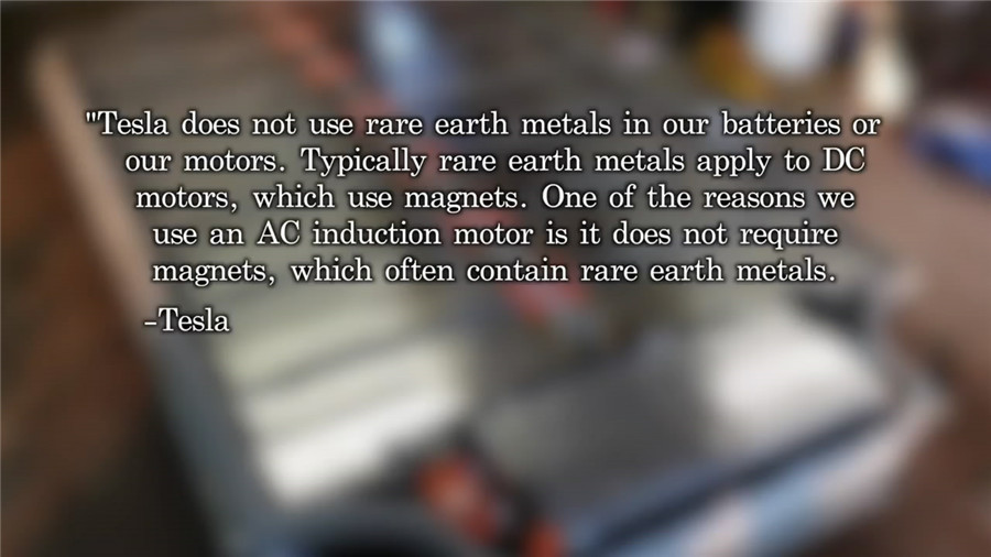 ????????視頻最后還討論了關(guān)于電動車中使用到的稀土資源,以及電池的后期回收問題。特斯拉使用了交流感應(yīng)電機(jī)而非直流電機(jī)的原因就是為了少使用稀有的稀土。