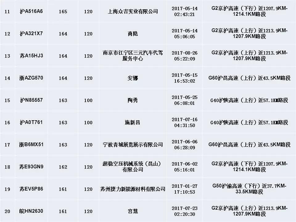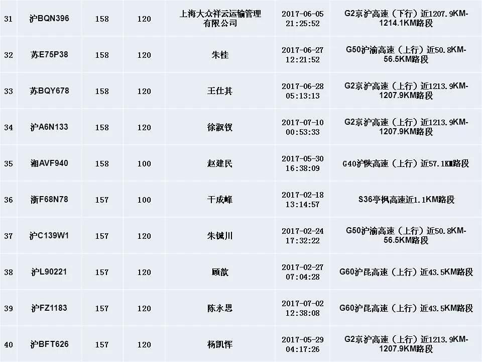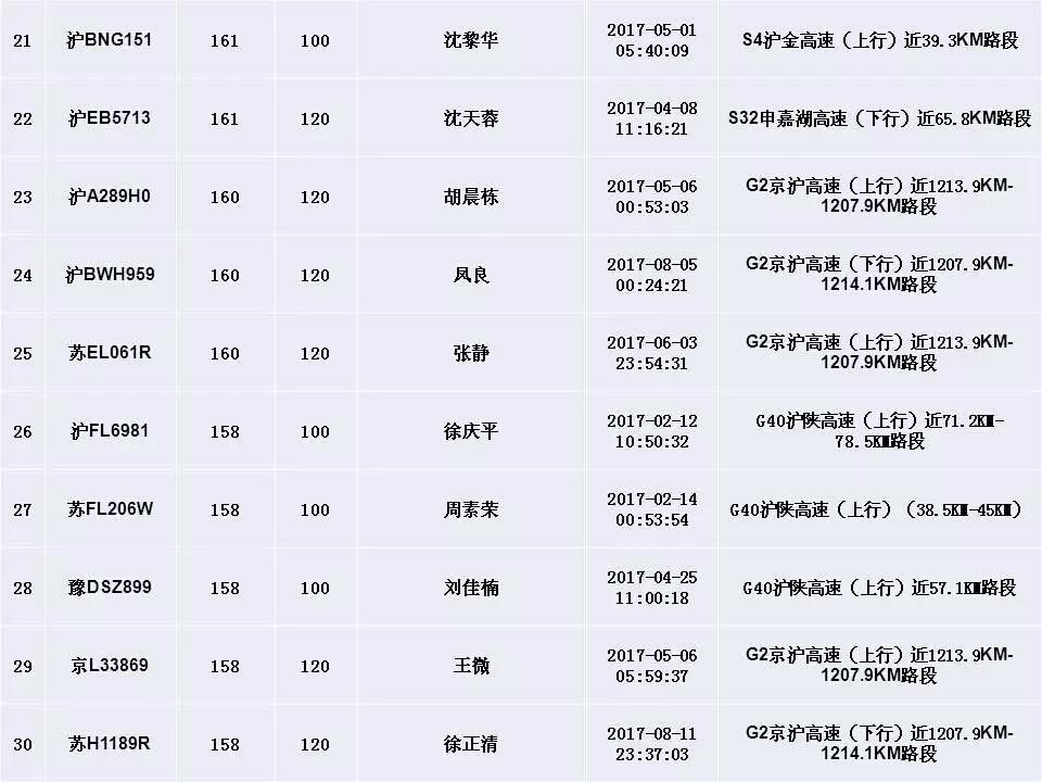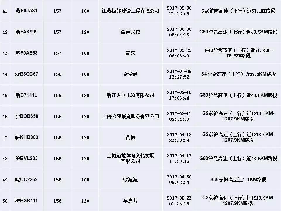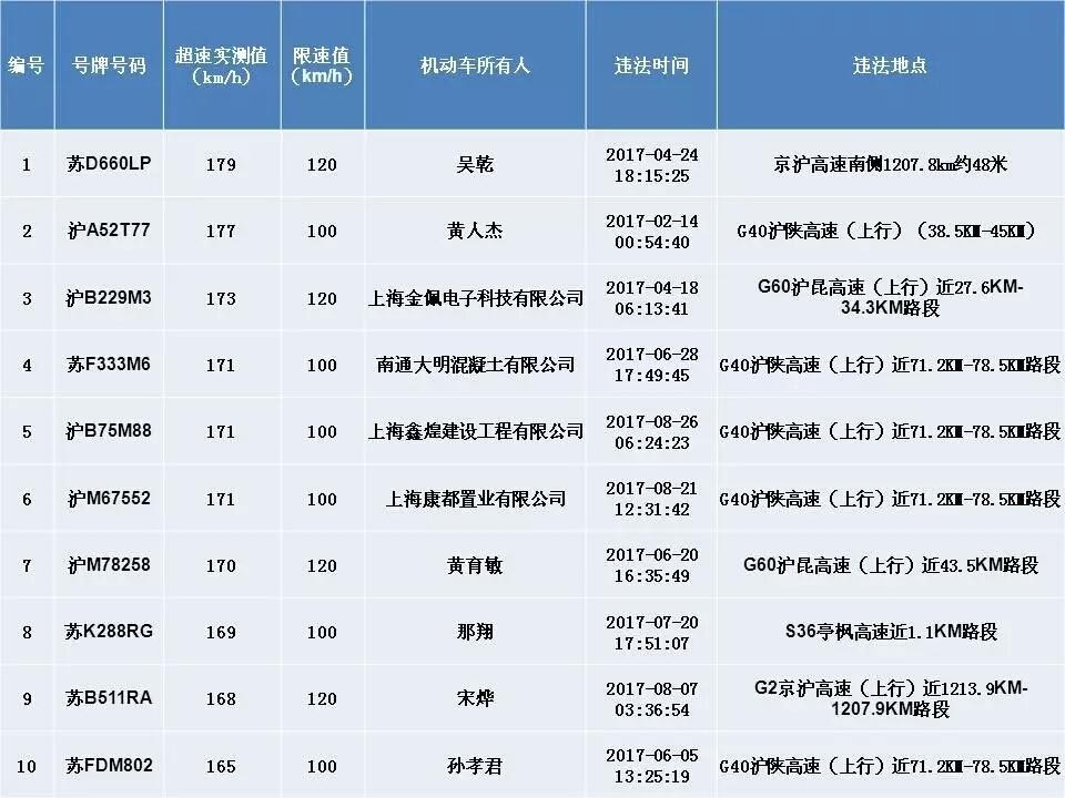 ????中青在線上海9月12日電(中國(guó)青年報(bào) 中青在線記者 王燁捷)上海交警今天公布今年以來(lái)“前五十”機(jī)動(dòng)車超速違法名單,最高時(shí)速竟達(dá)179km/h。