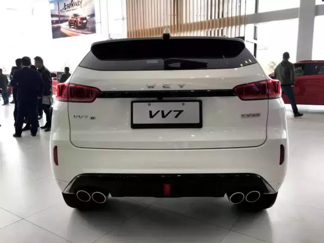 VV7車系下分VV7c和VV7s兩款車,VV7s細節(jié)設(shè)計上更為運動,配置更高一些,VV7c暫時不賣了,問銷售也不知道為何,展車也都是VV7s,白色是頂配,因為太火爆很難拍到周圍沒有人的時候。