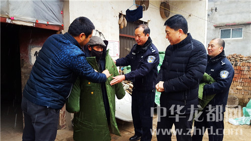 平安守護(hù),警民同心。上午10點(diǎn)多,天空中開始飄起雪花,在三里橋村張繼峰家,看到西屋的窗戶用一塊塑料遮擋著,民警及時(shí)為其進(jìn)行了更換。李月強(qiáng)夫婦孩子小,兩口子又因病致使生活不便,看到民警冒雪為其送來(lái)了兩件棉衣,李月強(qiáng)夫婦很是激動(dòng)。