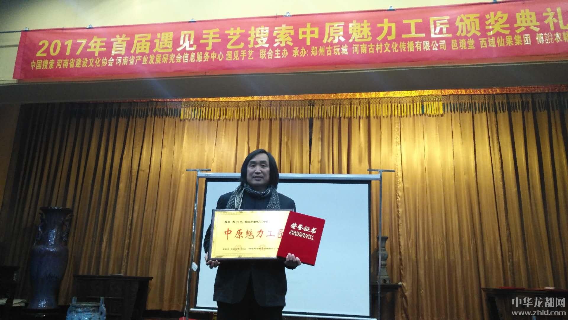 經(jīng)2017首屆中原魅力工匠評(píng)審工作委員會(huì)認(rèn)真初評(píng)、終評(píng)、綜合打分,最終張振福泥塑作品《老來(lái)伴》在推選活動(dòng)中榮獲“金獎(jiǎng)”。張振福等27位藝術(shù)家榮獲“中原魅力工匠”榮譽(yù)稱號(hào)。張振福作為民間藝術(shù)家代表在頒獎(jiǎng)典禮上作了唯一的典型發(fā)言即“獲獎(jiǎng)感言”。