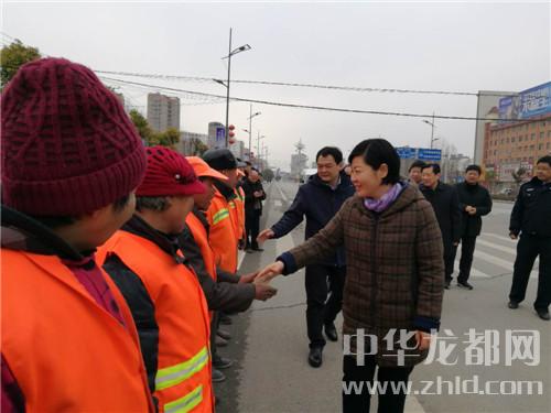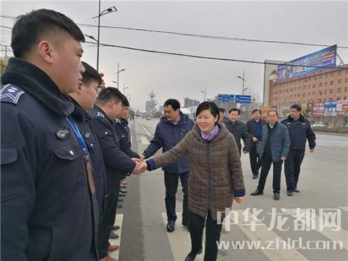 在鄲城縣城新華路與迎賓大道路口,羅文閣、李全林和一線值勤的環(huán)衛(wèi)工人、城管隊員一一握手,深切關心環(huán)衛(wèi)工人和城管隊員的冷暖?!翱词侄鄾觯┖顸c兒呀。大年三十了,你們放棄和家人團圓吃餃子的機會,在為我們的縣城保潔,我們城市的清潔有賴于你們。你們辛苦了,給你們拜個年,祝你們身體健康。”羅文閣向環(huán)衛(wèi)工人遞上慰問金時,樸實的話語、殷殷的關懷把黨的溫暖涌向環(huán)衛(wèi)工人的心窩兒?!安恍量?,領導來看俺,俺里比吃餃子暖和。”環(huán)衛(wèi)工人邊鼓掌邊道出了內(nèi)心的激動。