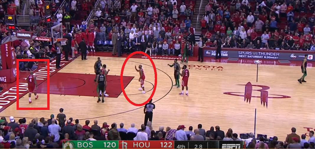 在比賽進行到最后2.8秒的時候火箭只領先綠軍2分,這也就是說什么事情都可能會發(fā)生。而在這個時候火箭發(fā)邊線球,就當火箭要發(fā)球的時候我們從上圖可以看到有6名球員在場上,而這個時候大局觀智商高超的保羅一眼就看了出來,他先是對著塔克大喊出去不過這時的塔克依舊慢慢悠悠,而這時的保羅都已經(jīng)跳了起來怒吼塔克讓其趕快出去。不得不說如果不是保羅這智商這大局觀一旦火箭發(fā)出球來那么無疑就是一個技術(shù)犯規(guī),那么最終火箭能不能取得勝利就真的不好說了。