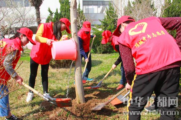 3月11日,項城中專的志愿者正在為剛剛種下的樹澆水埋土。植樹節(jié)來臨,為強化學(xué)生保護環(huán)境、植樹護綠的意識,項城市在全市中小學(xué)開展種花植樹系列活動,為美化家園貢獻力量。趙獻偉攝