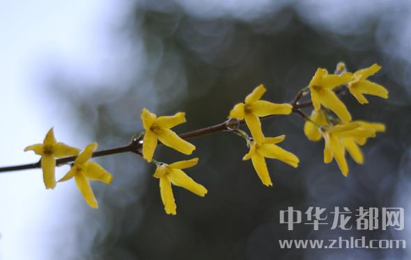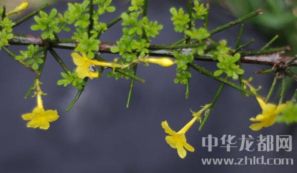 中華龍都網(wǎng)訊(周口報(bào)業(yè)全媒體記者 朱海龍 文/圖 )迎春花和連翹有些相似,花兒小巧,成串地分布在花枝上,花兒金黃,雨水的潤澤使她顯得分外嬌艷,大有臨風(fēng)而綻的仙姿靈骨。