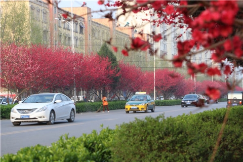 “不必費(fèi)勁周折跑到鄉(xiāng)間土路看桃花,我們這里的桃樹是專門的景觀桃。相比普通桃樹,景觀桃花瓣更多、更嬌艷,而且花期也相對(duì)較長(zhǎng)。”對(duì)桃樹頗有研究的賈海新說,只是建設(shè)大道西段處于周口城區(qū)西北角,靠近郊區(qū),這里盛開的桃花鮮有人知道而已。