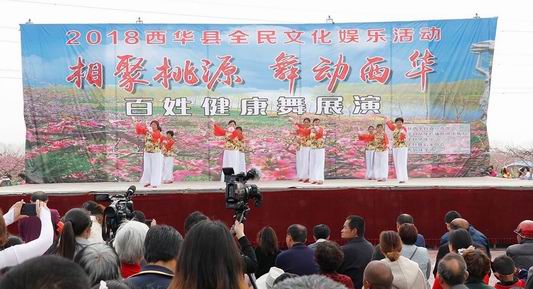 中華龍都網(wǎng)訊(周口報(bào)業(yè)全媒體記者 張猛)在西華縣第十四屆桃花節(jié)期間,由縣委宣傳部、縣文廣新局主辦的“相聚桃源 舞動(dòng)西華”百姓健康舞展演活動(dòng),在黃橋鄉(xiāng)萬畝桃園舉行,來自全縣的10 余支舞蹈隊(duì)參加展演?;顒?dòng)吸引眾多市民、游客前來觀看。