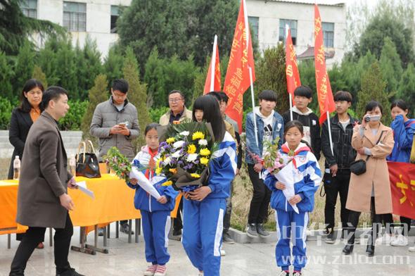 隨后,學(xué)生代表向烈士敬獻(xiàn)花籃,全體人員給烈士紀(jì)念碑敬獻(xiàn)了小白花,并鞠躬默哀,以此寄托對(duì)革命先烈的深深敬意和無(wú)限哀思。之后,少先隊(duì)員們?cè)诶蠋煹膸ьI(lǐng)下,重溫了入隊(duì)誓詞。