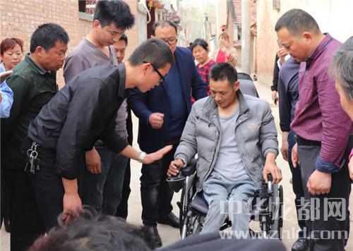 中華龍都網(wǎng)訊(周口報(bào)業(yè)全媒體記者 李瑞才 通訊員劉傳保 胡洪濤圖文)前不久,本網(wǎng)曾報(bào)道了鹿邑太清宮鎮(zhèn)男子王成濤因從10樓墜落致癱瘓,自愿捐出器官救別人的事跡,看到報(bào)道后,許多網(wǎng)友紛紛稱贊王成濤。為了方便王成濤活動(dòng),近日,在鹿邑縣委宣傳部、縣文明辦的倡導(dǎo)和參與組織下,鹿邑星宇電子商務(wù)有限公司的總經(jīng)理王朝華、郭彥山,副總經(jīng)理孫永建等人來到了太清宮鎮(zhèn)楊橋村,專門為王成濤送來他們在網(wǎng)上訂購的電動(dòng)輪椅。