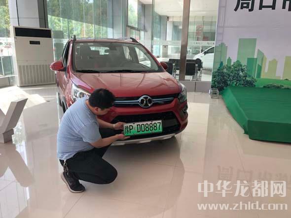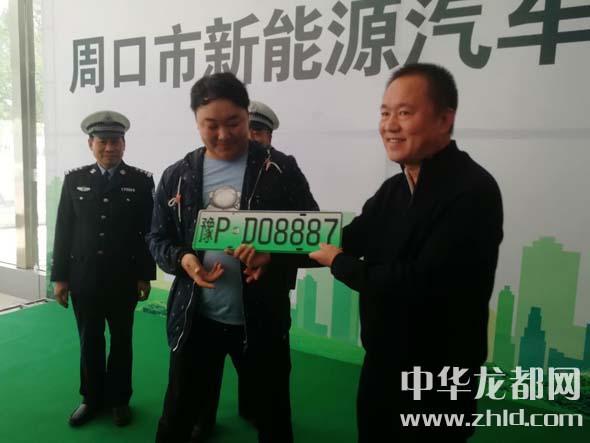 中華龍都網(wǎng)訊(周口報業(yè)全媒體記者 姬慧洋 陳永團 文/圖)4月10日上午10時,在市區(qū)太清路與昆侖路交叉口附近,我市新能源汽車號牌發(fā)放儀式啟動,在啟動儀式上周口市公安局交通管理支隊支隊長謝偉親手將“豫PD08887”這副新能源汽車號牌送到車主張磊的手中。據(jù)介紹,為了能夠盡早選到自己心儀的號牌,家住市區(qū)漢陽路附近的張磊一大早就趕到了位于建設(shè)大道與周口大道交叉口周口幼師北門附近的萬達便民服務(wù)站,在現(xiàn)場通過“50選1”的號牌選擇方式,喜獲自己心儀的號牌。