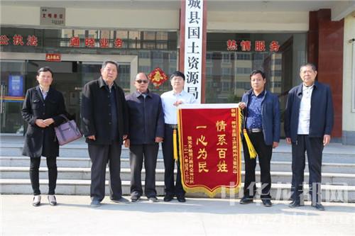 中華龍都網(wǎng)訊周口報業(yè)全媒體記者 徐松 通訊員 陳吳陸)5月3日,鄲城縣張完鄉(xiāng)趙樓行政村村民代表趙傳本等一行4人手捧一面“情系百姓一心為民”的錦旗,專程來到鄲城縣國土資源局,對該局副局長孫玉君駐村以來的工作成效給予了高度贊揚,以此表示群眾對國土局領(lǐng)導(dǎo)干部為群眾解決困難的感激之情。