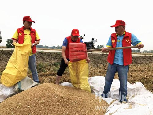 中華龍都網(wǎng)訊(周口報(bào)業(yè)全媒體記者 付永奇 通訊員 高華)6月2日,在商水縣白寺鎮(zhèn)趙金言家的麥田里,一臺(tái)大型收割機(jī)正在作業(yè)。中石油周口分公司10多名青年志愿者在麥田里不停的忙碌著,從麥籽出倉到裝袋、裝車,井然有序;中石油周口分公司總經(jīng)理、黨委書記何學(xué)習(xí)為收割機(jī)司機(jī)遞上收割費(fèi)用,并送上汗衫、毛巾、手套等日常用品。