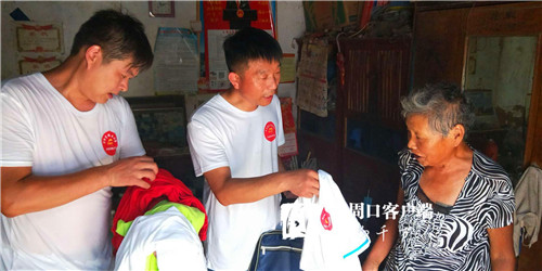 捐贈儀式上,太康縣商務(wù)局局長李曉虹和清集鎮(zhèn)黨委書記吳文靜向張子穎村捐贈愛心體恤衫。隨后由各位領(lǐng)導(dǎo)帶隊向困難群眾發(fā)放愛心體恤衫,并鼓勵他們樹立信心、克服困難,早日走向富余。