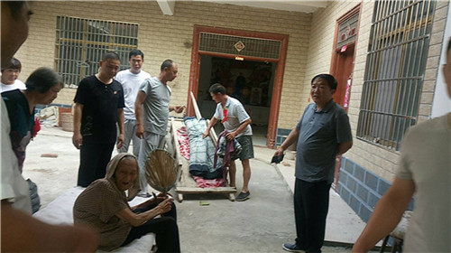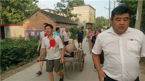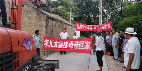當日早上,秋渠鄉(xiāng)高小橋行政村牛橋和孫大莊自然村,鄉(xiāng)村干部打著橫幅、孝順兒、媳胸帶紅花,用架子車拉著老人,后面跟著圍觀的村民,通過隆重“接老人回家”活動,激勵更多人孝老愛親。