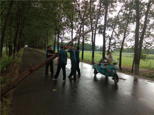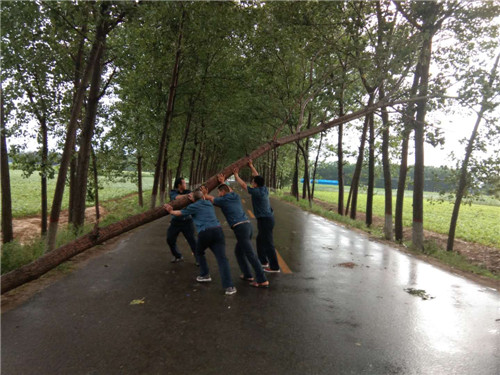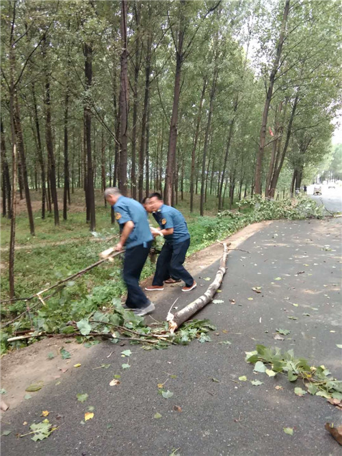 在東夏看張立交橋、李莊橋處,多棵行道樹被大風刮倒,大量枝掉落在公路上,嚴重危及行車安全和道路通行,執(zhí)法人員立即冒雨采取安全防護措施,并利用車載應急搶險工具將倒塌在公路上直徑為10-20cm的樹木進行及時清理,并對殘枝落葉進行了全面清掃。歷時三個小時,及時地消除了道路安全隱患,保障人民群眾的出行安全。