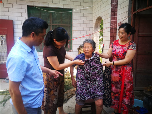 7月29日上午,周口市太康縣五里口鄉(xiāng)桂李行政村82歲老人石鳳蘭格外高興:該縣工商局翟保紅等3名駐村女扶貧干部相約來(lái)到她家里看望,并為她買(mǎi)來(lái)新衣服等?!皼](méi)想到老了老了,又多了3個(gè)好閨女,這日子真是越過(guò)越好啊!”石鳳蘭老人高興地說(shuō)。