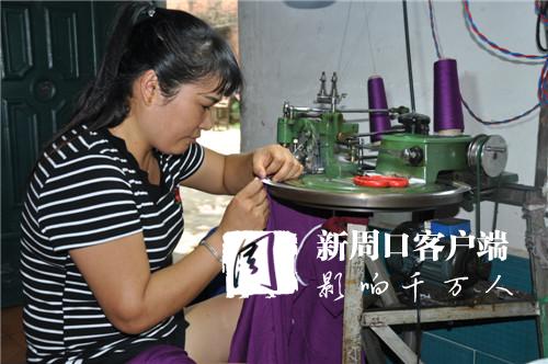 今年以來,商水縣實施精準(zhǔn)扶貧,大力發(fā)展服裝代加工,讓不能外出打工的貧困群眾從工廠領(lǐng)回設(shè)備和原材料在家加工,廠方上門進(jìn)行技術(shù)指導(dǎo)并回收成品。圖為該縣巴村鎮(zhèn)董村村民使用廠方提供的毛衣編織機(jī)在家加工羊毛衫。