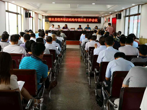8月16日上午,商水縣校外培訓(xùn)機構(gòu)專項治理工作推進會在教體局四樓會議室召開??h教體、民政、人社、工商、公安、城管、食藥監(jiān)、消防等8個單位相關(guān)負責人,各鄉(xiāng)鎮(zhèn)(場、辦)分管教育副職,縣教體局各股室負責人,各中心校長、縣直學(xué)校(幼兒園)校長參加會議。會議由縣教體局負責人鄭春來主持。