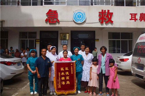 8月20日上午,伴著歡快的嗩吶聲,鄲城縣張完鄉(xiāng)的王先生和妻子、女兒一起懷著激動的心情,帶著一面印有“醫(yī)德高尚 醫(yī)術(shù)精湛”的錦旗來到鄲城縣中醫(yī)院,把錦旗送到該院急診科醫(yī)護(hù)人員手中,算是了結(jié)了一樁讓他和家人牽掛了兩年的“心事”。