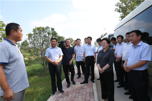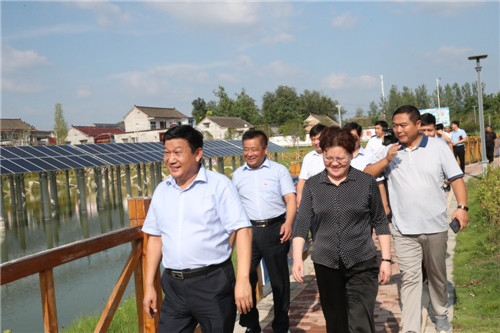 當(dāng)日下午,張穎波一行在太康縣縣長李錫勇,縣委副書記、縣政法委書記王程清等領(lǐng)導(dǎo)的陪同下,先后來到河南玉柏生物科技有限公司老冢鎮(zhèn)豆丹養(yǎng)殖基地、劉寨漁光互補基地、劉寨村委大院、劉寨文化大院、劉寨扶貧車間及構(gòu)樹產(chǎn)業(yè)扶貧基地等處考察。