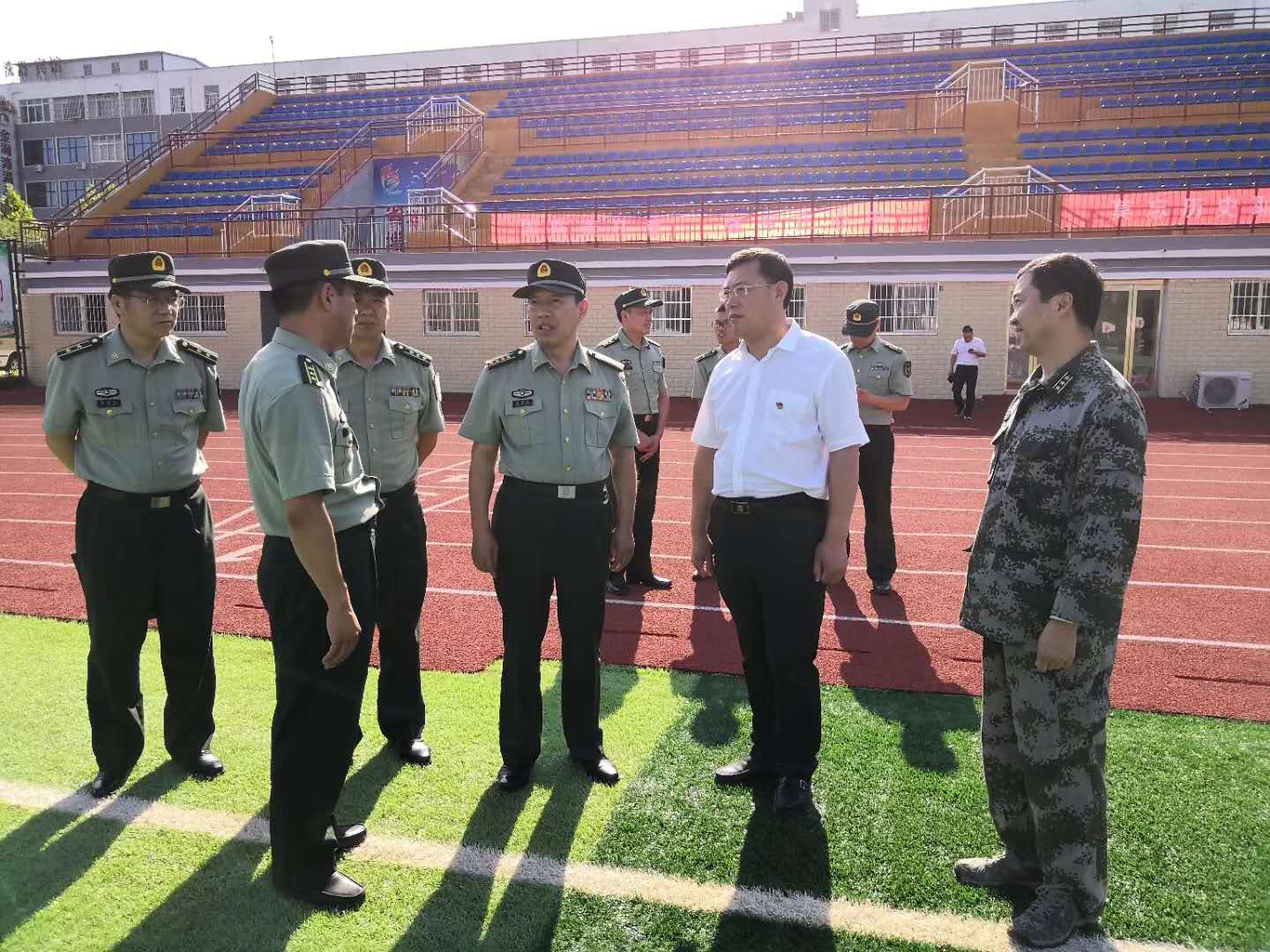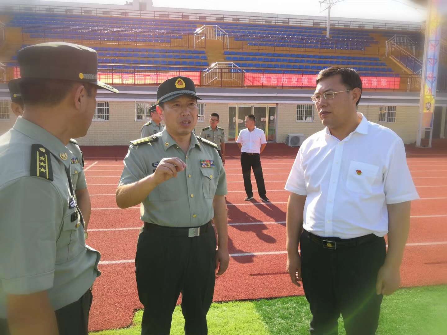 在縣委書記馬衛(wèi)東,縣委常委、縣人武部政委李強(qiáng),縣人武部部長何永華等人的陪同下,王善沖一行實(shí)地察看了新兵役前訓(xùn)練情況,與新兵進(jìn)行親切交談,詳細(xì)詢問了解訓(xùn)練生活情況。