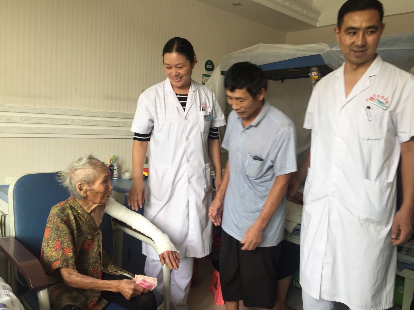 8月26日,駐村第一書記劉春華和村脫貧責(zé)任組組長李小林懷著感激之情,為周口燒傷醫(yī)院送去錦旗兩面。周口燒傷醫(yī)院長張巋說:“幫扶工作是黨的工作,縣、鄉(xiāng)、村干部的真心幫扶,我們醫(yī)院也應(yīng)當(dāng)發(fā)揮扶貧濟(jì)困的作用,盡一些社會責(zé)任,為貧困的群眾做點(diǎn)好事,解決他們的實(shí)際困難”,院方當(dāng)即決定贈送給李二俊老太太2000元現(xiàn)金營養(yǎng)費(fèi)?!?/p>