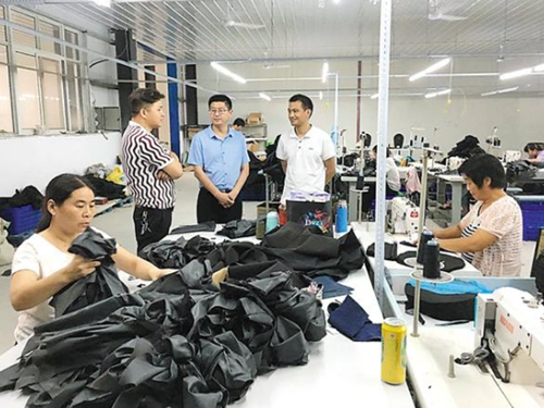 縣委常委、宣傳部長李本磊在“巧媳婦”工程加工點調(diào)研